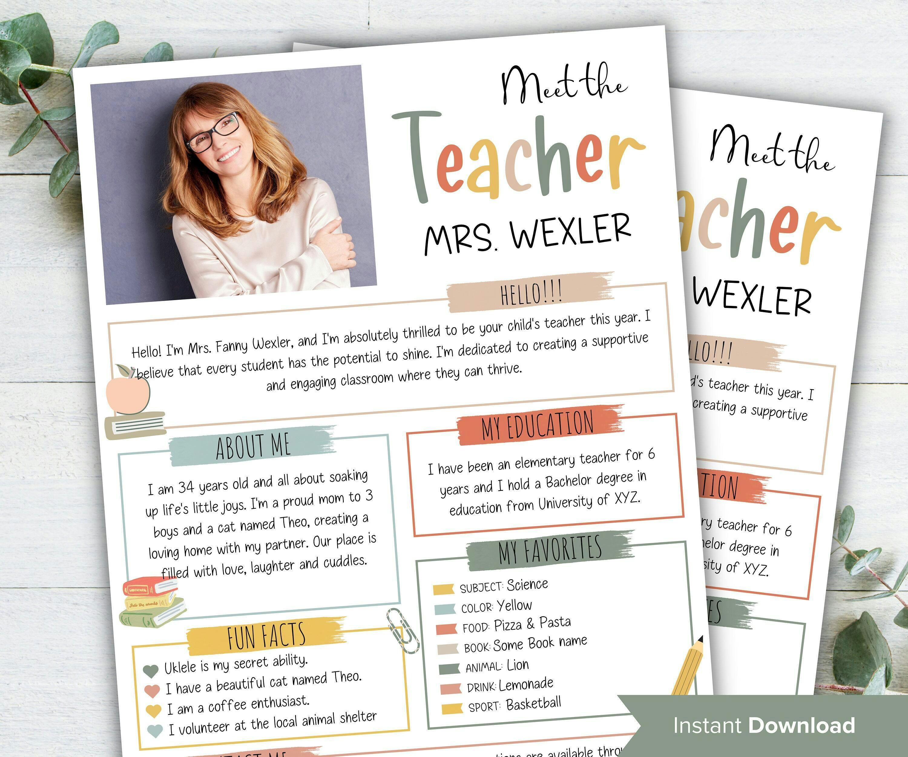Back to school season is right around the corner, and our Meet the Teacher Template is the perfect resource to kickstart the year. Get organized and save time with this easy-to-use editable template. Simply personalize it with your information and watch as it transforms into a polished, attention-grabbing introduction for your classroom. In addition to being a valuable resource for new teachers, this template is also a time-saving solution for experienced educators. Invest in our Meet the Teacher Template and devote more time to what truly matters – providing your students a nurturing and engaging learning environment.