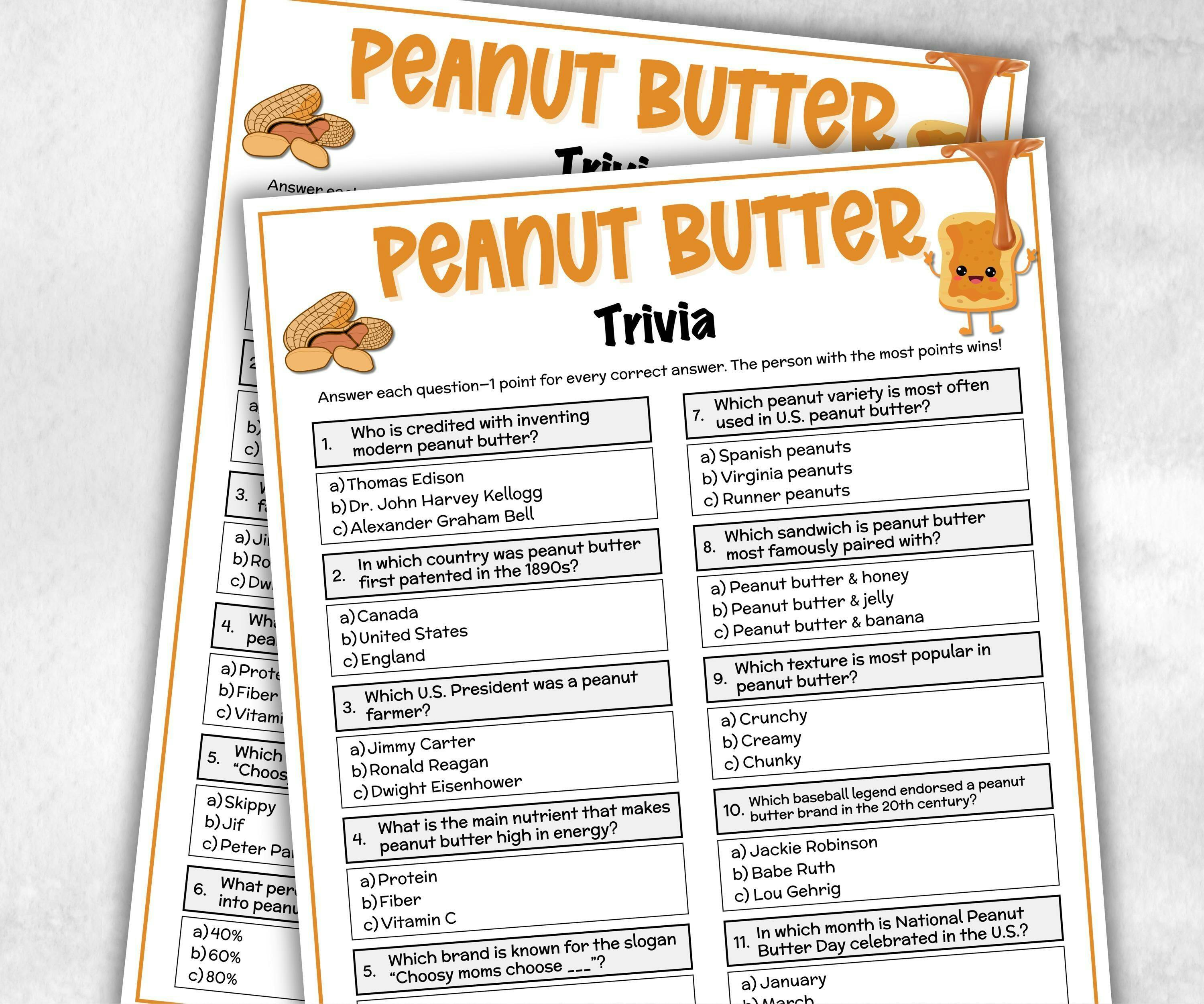 Whether you love peanut butter on toast, in cookies, or straight from the jar, this trivia is guaranteed to be a deliciously fun way to play!