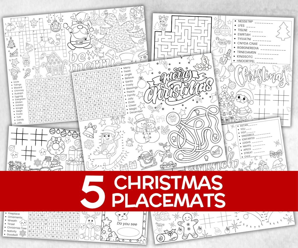 Make mealtime merry with the Christmas Placemats Bundle — a printable set of festive activity sheets perfect for kids and families! These placemats double as holiday table décor and fun games, keeping children busy with coloring pages, tic-tac-toe, word searches, Santa fun, and Christmas-themed activities. Whether you’re setting up a Christmas dinner table, hosting a Friendsmas, or planning a holiday party for kids, these placemats bring joy and creativity to your celebration. 🎄🎅❄️
