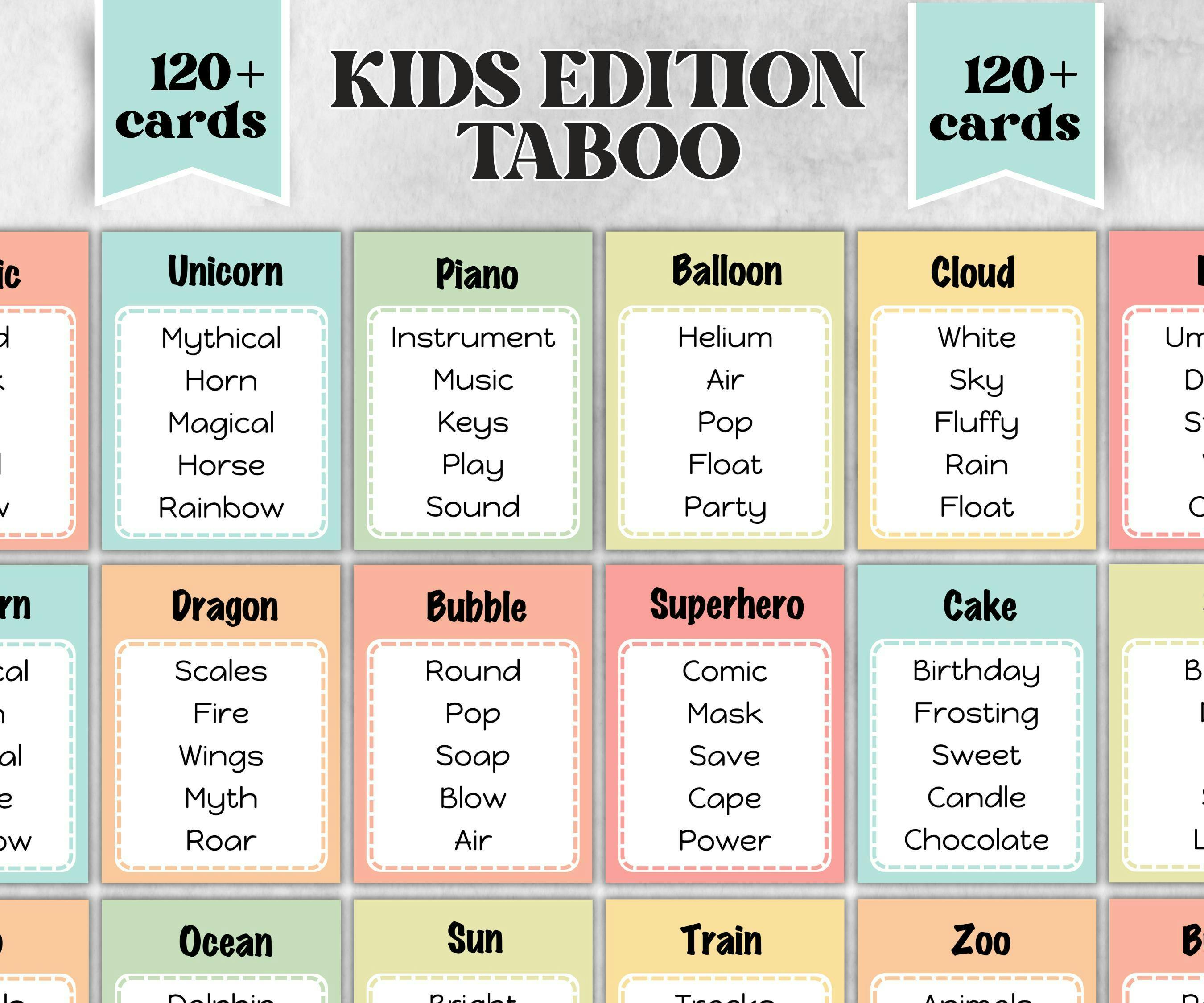 Built around a quick guess the word format with a forbidden words idea twist, it's an easy family friendly game that helps kids think on their feet while having fun.