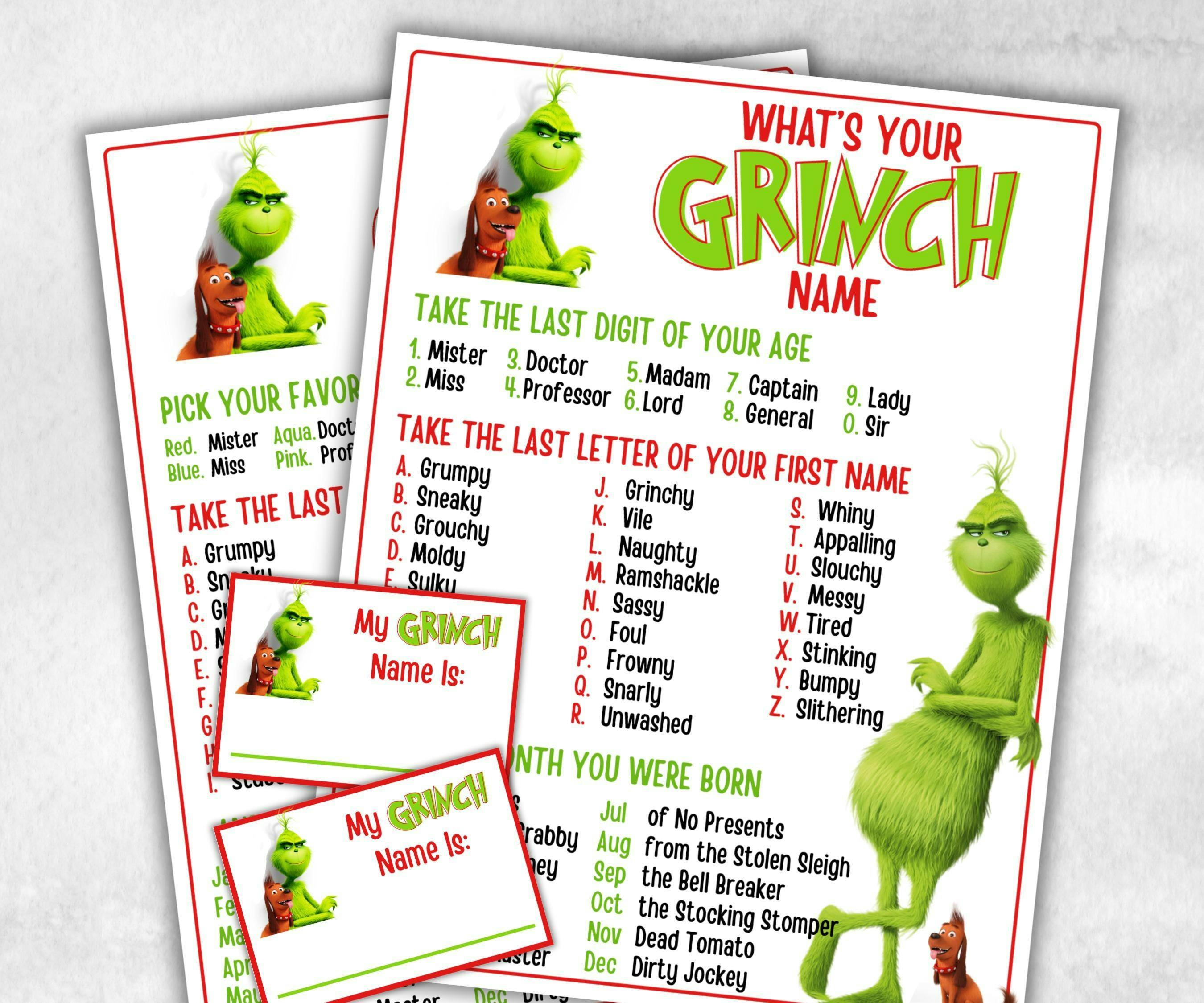 What’s Your Grinch Name? – Printable Christmas Party Game for Kids, Teens & Families