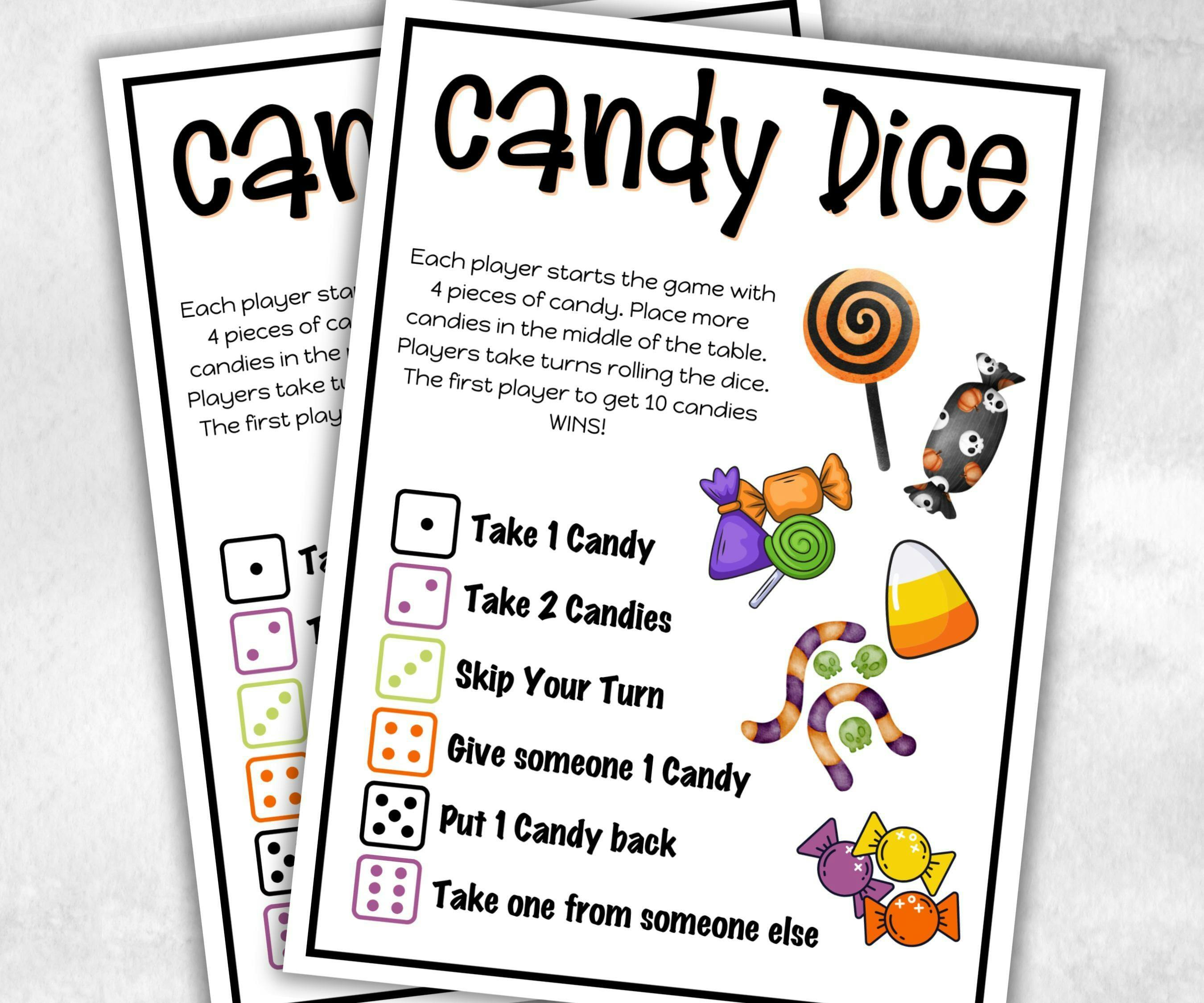 Halloween Candy Dice – Printable Game for Kids, Teens & Halloween Parties