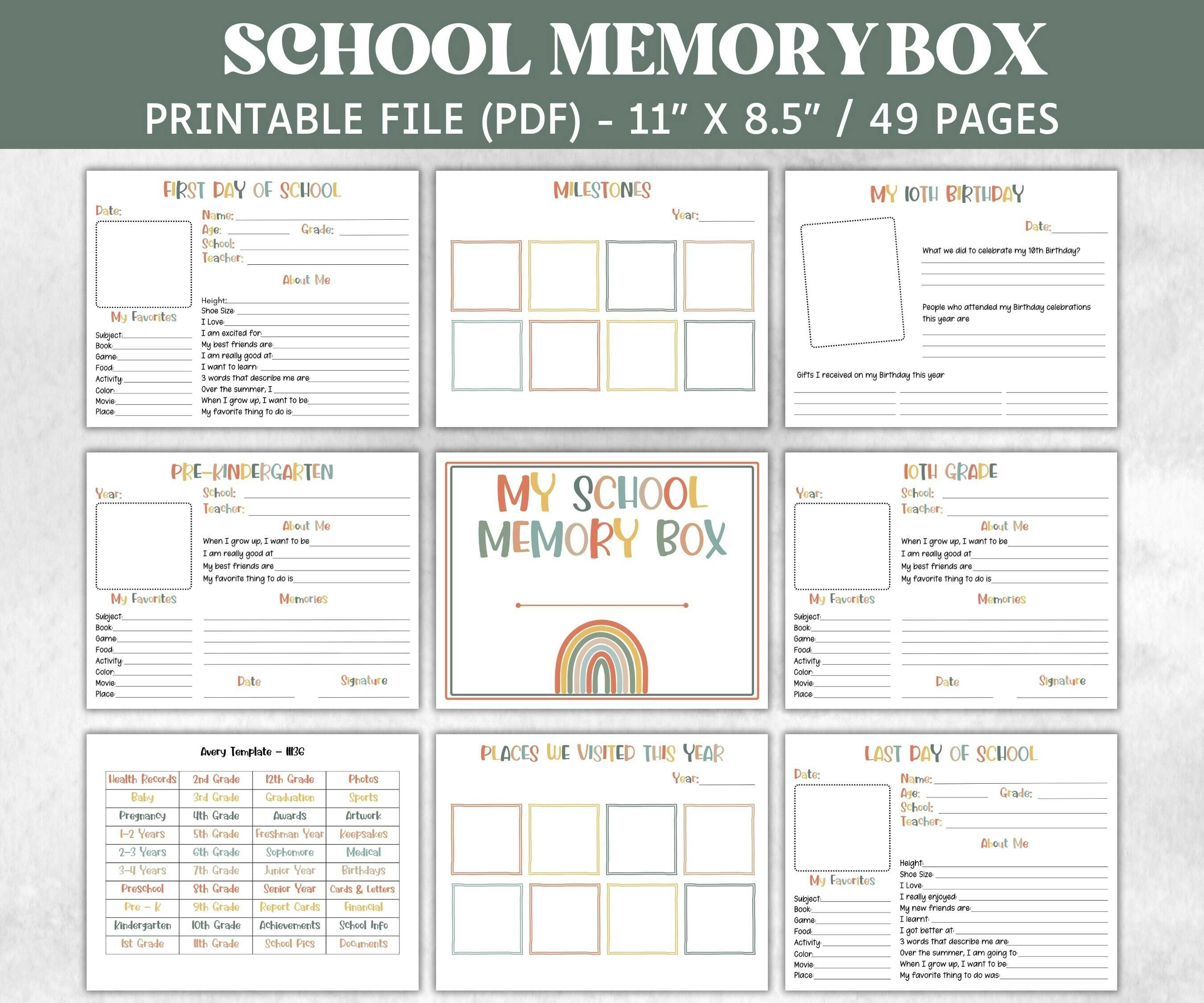 Capture every special moment with our Baby Milestone Box, perfect for preserving your child's cherished memories. This comprehensive baby memory box and kids milestone kit includes baby file box options and kids file labels for seamless school organization and home organization. Ideal for creating a DIY memory box or a school keepsake box, it ensures every milestone is treasured.