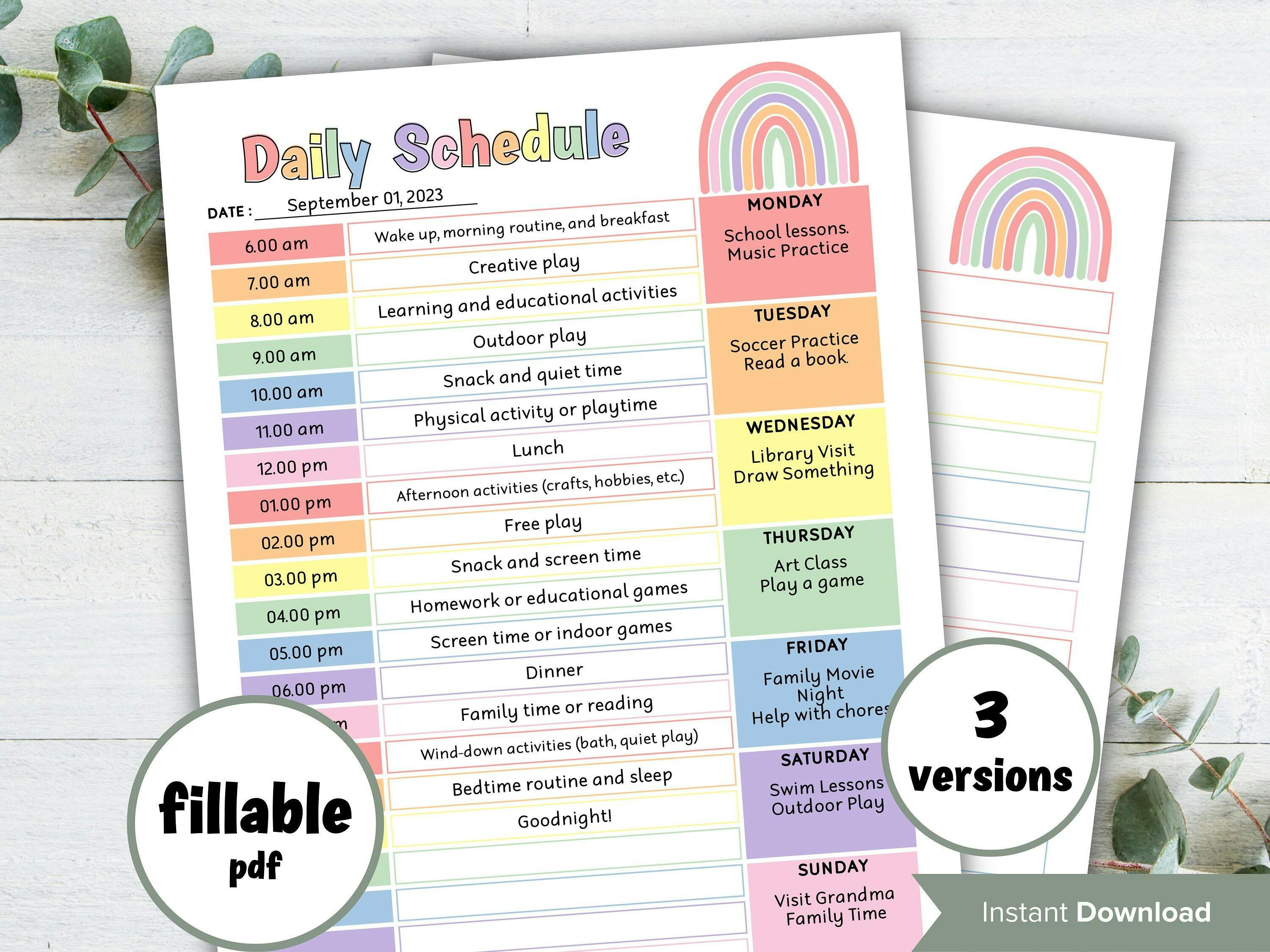 - 1 PDF – Daily Schedule - Fillable - 3 variations