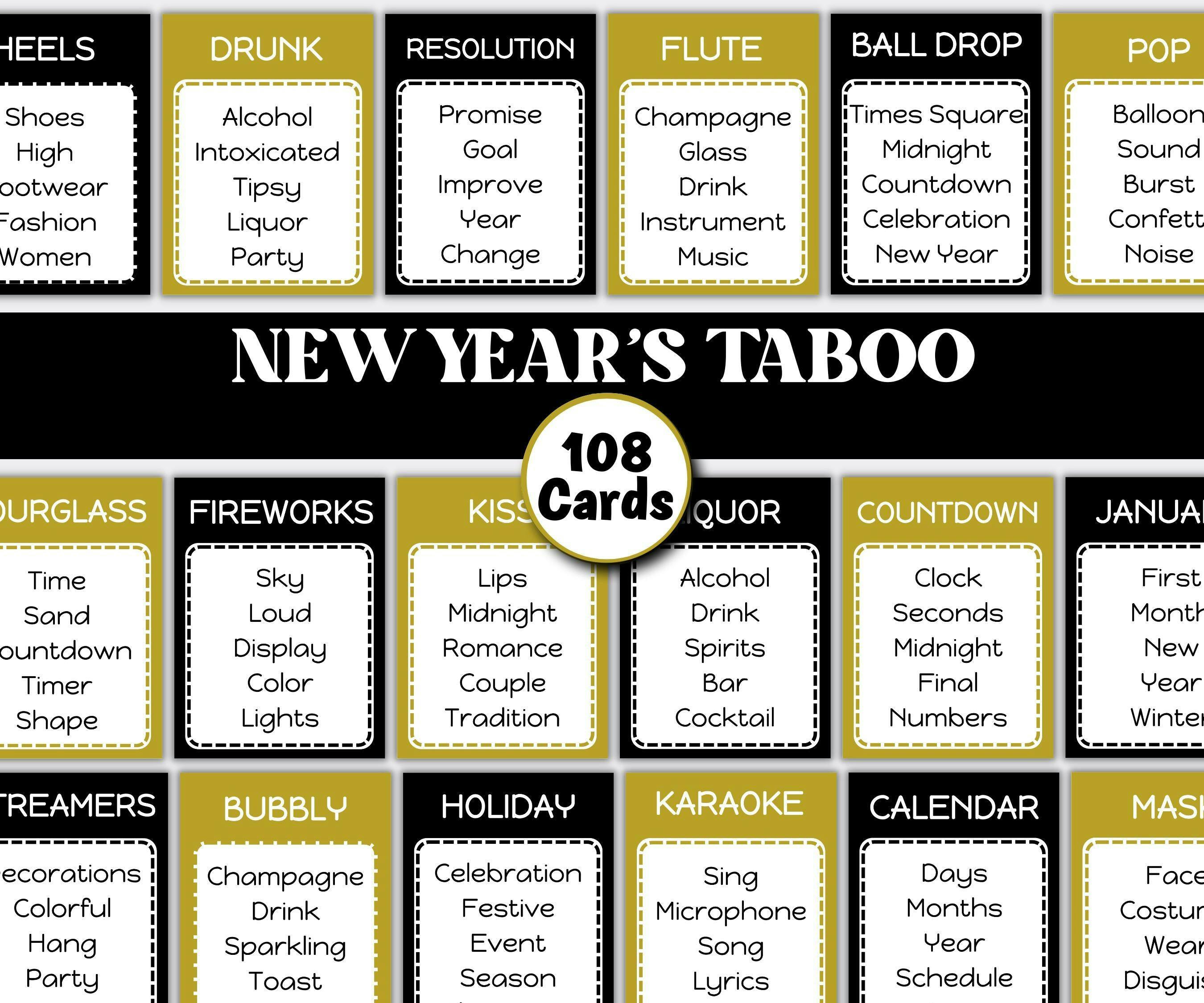 Make your New Year’s Eve Party unforgettable with our exciting New Year’s Eve Game – a fun twist on the classic New Years Taboo Game! This Printable New Years game is perfect for both adults and kids, designed to get everyone involved in the fun. The Forbidden Words Game will have your guests racing against the clock to describe words without using the most obvious clues, making it the ideal Holiday Party Game for laughter and friendly competition. Whether it’s a cozy family gathering or a lively classroom celebration, this game guarantees hours of entertainment.
