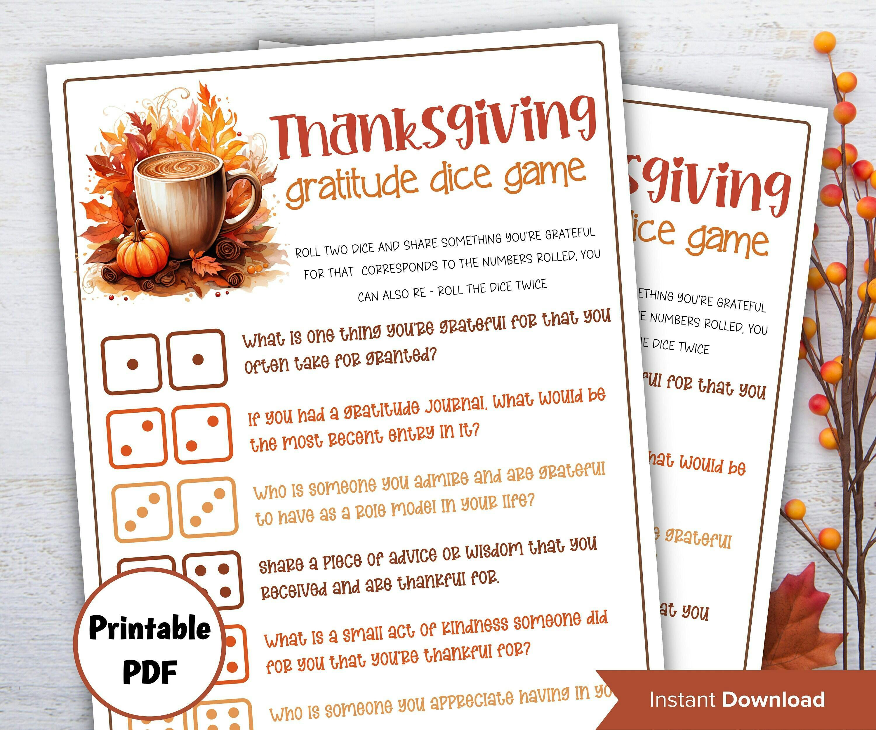 Friendsgiving Dice Game - Gratitude Journal Prompts