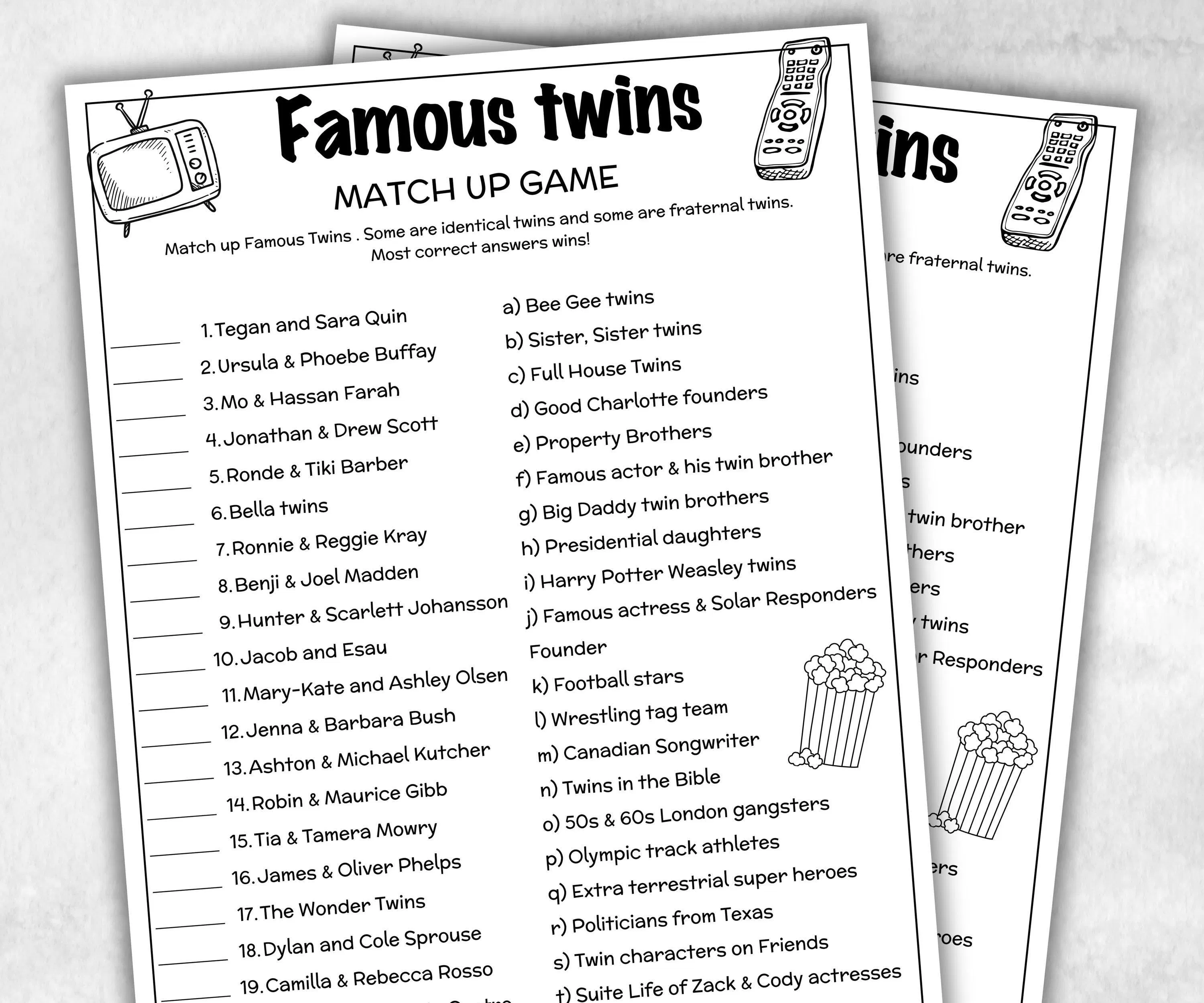 Whether you’re playing an identical twins game, adding a quick shower quiz, or looking for a unique icebreaker, Famous Twins Trivia works for all ages. It’s a hit for mommy-to-be games, twin birthday fun, and even as a laid-back family activity. Simple to set up, fun to play, and guaranteed to get people talking, this twins trivia quiz is the perfect way to keep the party buzzing from start to finish.
