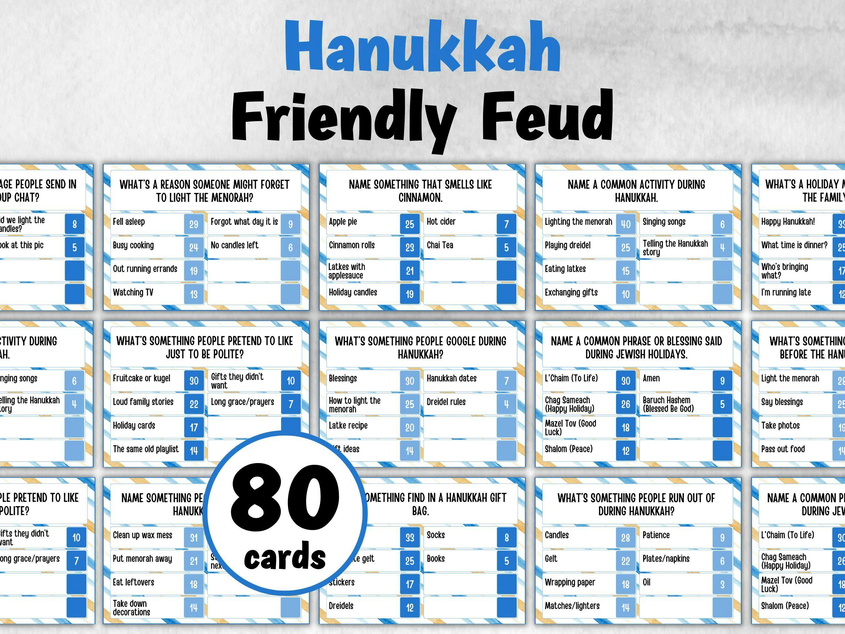 Get ready for laughs, surprises, and a little friendly competition with this Hanukkah Family Feud game! Inspired by the classic game show, this printable version is perfect for Jewish holiday parties, family gatherings, classroom fun, or a lively DIY Hanukkah night.
