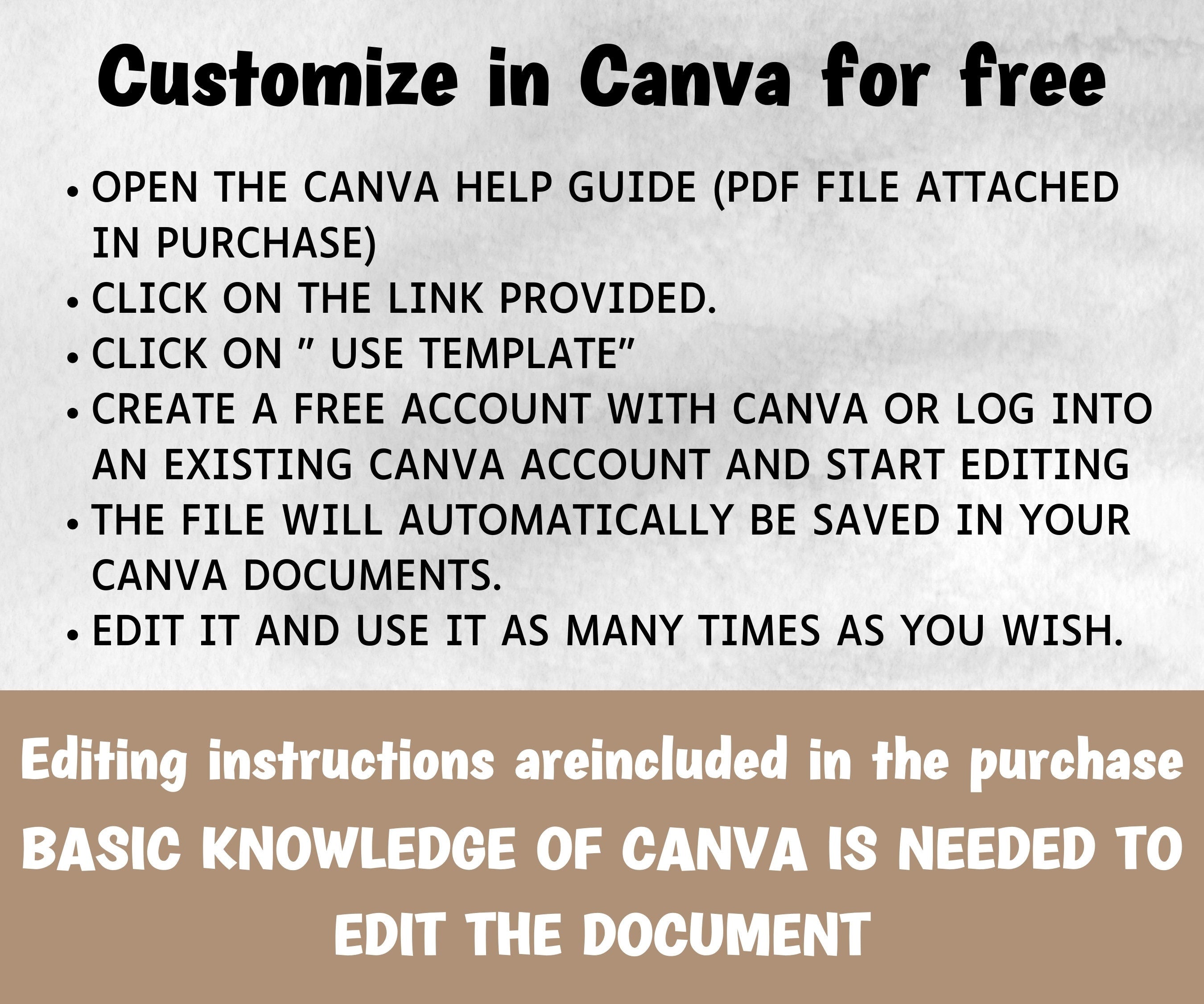 Some of our products require specific software, such as Canva or Adobe. If a product requires Canva or Adobe, a help guide for the respective software will be included with your purchase.
